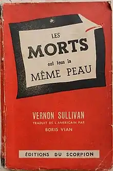 The Dead All Have the Same Skin (French: Les morts ont tous la même peau) is a 1947 crime novel by the French writer Boris Vian. It tells the story of a mixed Black-White American, who manages to have a career in "white society" without anyone knowing of his origin; when his black half-brother turns up and tries to blackmail him by threatening to reveal his origin, his life turns into a downward spiral of violence. It was the second book published under the pseudonym Vernon Sullivan, after I Spit on Your Graves from 1946.