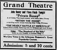 ![]() Newspaper advertisement for The Deadly Battle at Hicksville and several other films | |
