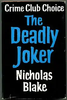 The Deadly Joker is a 1963 mystery novel by the Anglo-Irish writer Cecil Day-Lewis, under his pen name of Nicholas Blake.[1][2] It was one of four stand-alone novels he wrote under the name alongside the Nigel Strangeways detective novels. It is unusual for the author for being written in a first person narrative from the prospective of the protagonist John Waterson.[3]