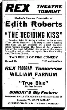 1. "Progressive Silent Film List: The Deciding Kiss". silentera.com. Retrieved May 5, 2008.