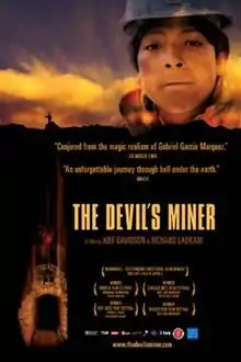 The Devil's Miner is a 2005 documentary film directed by independent film directors Kief Davidson and Richard Ladkani. The film follows a fourteen-year-old Bolivian boy named Basilio Vargas who along with his twelve-year-old brother Bernardino work in the mines near the city of Potosí. The film includes many subtle realities of the miner's lives such as the need to chew coca leaves to numb the pain of hunger and the long shifts they work regardless of age.[1] The film made its world premier at the Rotterdam film festival and its U.S. debut at the Tribeca Film Festival.