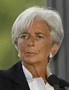 For Miranda's actual look, Streep looked to two women. The bouffant hairstyle was inspired by model and actress Carmen Dell'Orefice,[lower-alpha 2] which Streep said she wanted to blend with "the unassailable elegance and authority of [French politician] Christine Lagarde".[8][14] She wanted Miranda's hair to be white, which the producers feared would make her look too old, but the studio trusted her and she worked with makeup artist and stylist J. Roy Helland, a longtime associate, to create the look.[9]