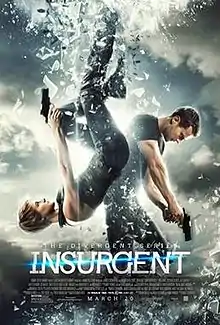 The Divergent Series: Insurgent (simply known as Insurgent) is a 2015 American dystopian science fiction action film directed by Robert Schwentke, based on the 2012 novel Insurgent, the second book in the Divergent trilogy by Veronica Roth. It is the sequel to the 2014 film Divergent and the second installment in The Divergent Series,[3][4] produced by Lucy Fisher, Pouya Shabazian and Douglas Wick, with a screenplay by Brian Duffield, Akiva Goldsman and Mark Bomback.[5][6] Schwentke took over from Neil Burger as director, with Burger serving as the executive producer of the film. Along with the first film's returning cast, led by Shailene Woodley and Theo James, the sequel features supporting actors Octavia Spencer, Naomi Watts, Suki Waterhouse, Rosa Salazar, Daniel Dae Kim, Jonny Weston, Emjay Anthony, and Keiynan Lonsdale.