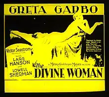The Divine Woman (1928) is an American silent film directed by Victor Sjöström and starring Greta Garbo. Produced and distributed by Metro-Goldwyn-Mayer. Only a single nine-minute reel[3] and an additional 45-second excerpt[4][5] are currently known to exist of this otherwise lost film, the only whole copy of which was destroyed in the 1965 MGM vault fire.[6][7][8]