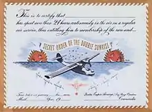 The Secret Order of the Double Sunrise was an illustrated certificate given to passengers aboard the flying boats of the Australia–England air link, to attest they had been airborne for more than 24 hours.[16][22]