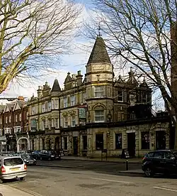 The pub was conceived as a family and residential hotel, and the plans were drawn in 1893 by the Stephens Brothers. The pub opened in 1894, making it one of the oldest pubs in Ealing.[1] It contained four floors and sixty rooms; behind the hotel were ornamental gardens, tennis courts, a bowling green and skittle courts. It initially charged 25 shillings per week for residents.