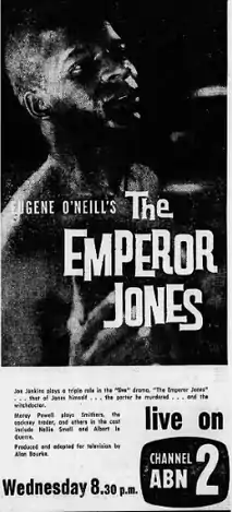 The Emperor Jones is a 1960 Australian TV play based on the play The Emperor Jones by Eugene O'Neill. It starred Joe Jenkins, a dancer who was living in Australia. He played a triple role.[4]