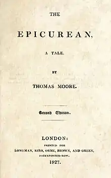The Epicurean is a novel by Thomas Moore, published in 1827. It relates the story of Alciphron, leader of the Epicurean sect in Athens in the 3rd century AD, who is on a journey to Egypt to find the secret to immortality. Some editions of the book include etchings by J. M. W. Turner.[1]