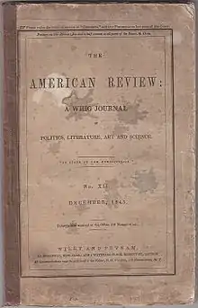 While editor of The Broadway Journal, Poe printed a letter from a New York physician named Dr. A. Sidney Doane that recounted a surgical operation performed while a patient was "in a magnetic sleep"; the letter served as inspiration for Poe's tale.[10] "The Facts in the Case of M. Valdemar" was published simultaneously in the December 20, 1845, issue of the Broadway Journal and the December 1845 issue of American Review: A Whig Journal[8]—the latter journal used the title "The Facts of M. Valdemar's Case".[11] It was also republished in England, first as a pamphlet edition as "Mesmerism in Articulo Mortis" and later as "The Last Days of M. Valdemar".[12]