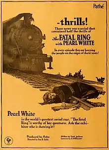 The Fatal Ring is a 1917 American action film serial directed by George B. Seitz. Silentera.com reports that the UCLA Film and Television Archive may have a complete print.[1] A deteriorating fragment roll containing a scene is discovered in France by Australian filmmaker Robert Hoskins in 2021 who then scanned it and uploaded it to his YouTube channel.[2]