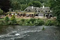 The inn has a carvery and is said to serve good-quality meat and fish dishes, such as herbed stuffed trout, mussels and Aberdeen Angus burgers.[3][4][5] The inn is reported to have obtained the rights to fish a 3/4 mile stretch of the River Exe, providing the restaurant with an abundance of fresh fish to serve.[6] The Waterside Bar of the inn overlooks the river and the bridge.