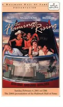The Flamingo Rising is a 2001 dramatic film in the Hallmark Hall of Fame released on CBS in February 2001, and based on the novel The Flamingo Rising written by Larry Baker in 1997. The movie stars Christopher Larkin, William Hurt, Elizabeth McGovern, and Brian Benben. The movie focuses on the feud between a funeral parlor owner and a man who wants to set up a large drive-in theatre across the street from the parlor. Former In the Heat of the Night star Randall Franks returned to CBS, which aired the film, in the cameo role of "Officer Randy Kraft."