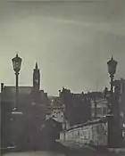 In recent years municipal and state authorities have sought to redevelop the neighborhood as a startup company incubator and cultural center through the creation of the Innovation District and Canalwalk. Proposals have also been put forth for redevelopment of the historic H. H. Richardson train station as well as the Hotel Jess/Perkins Block.[5] While not on the National Register of Historic Places, the latter holds historical significance as it was constructed by Benjamin F. Perkins, a contemporary of Alexander Graham Bell, who had manufactured and demonstrated early telephone equipment personally for the inventor during his visits to Holyoke, and whose eponymous block was the first headquarters of the Springfield Telephone and Automatic Signal Company, a division of the Bell company, and Western Massachusetts' first telephone exchange, established in 1878.[7][8] That same year the building became one of two sites for the world's first public-use toll line, which connected Springfield and Holyoke when it entered service on June 15, 1878.[9]