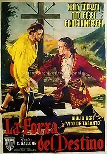 The Force of Destiny (Italian: La forza del destino) is a 1950 Italian musical melodrama film directed by Carmine Gallone and starring Nelly Corradi, Tito Gobbi and Gino Sinimberghi.[1] It is based on Giuseppe Verdi's opera La forza del destino.