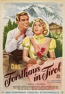 The Forest House in Tyrol or The Lodge in Tyrol (German: Das Forsthaus in Tirol) is a 1955 West German drama film directed by Hermann Kugelstadt and starring Wera Frydtberg, Helmuth Schneider and Dorothea Wieck.[1] [2] Location shooting took place around Mittenwald, Innsbruck and Kitzbühel. Interiors were shot at temporary studio in Mittenwald. The film's sets were designed by the art director Max Seefelder. It was part of the boom in heimatfilm in post-war West Germany.