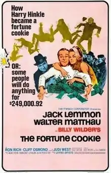 The Fortune Cookie (alternative UK title: Meet Whiplash Willie) is a 1966 American black comedy film directed, produced and co-written by Billy Wilder. It was the first film in which Jack Lemmon collaborated with Walter Matthau. Matthau won an Academy Award for Best Supporting Actor for his performance.