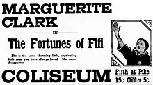 The Fortunes of Fifi is a 1917 American silent historical romance film directed by Robert G. Vignola and starring Marguerite Clark. Based on the novel of the same name by Molly Elliot Seawell, the film is set in France and takes place during the era of Napoleon Bonaparte.[1] The film is now presumed lost.[2][3][4]