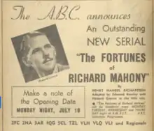 - ↑ Australian Broadcasting Commission. (1939), "Richard Mahony as A.B.C. Serial", ABC weekly, Sydney: ABC (Vol. 11 No. 29 (16 July 1949)), nla.obj-1370760717, retrieved 24 August 2023 – via Trove