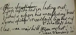 Burns added an extra verse to 'Tam Samson's Elegy' on page 152 and indicated the position it should be placed in the reading order:
