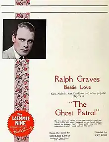 The Ghost Patrol is a 1923 American silent romantic melodrama[6] film directed by Nat Ross from a short story by Sinclair Lewis, produced and distributed by Universal Pictures.[1] It starred Ralph Graves and Bessie Love and is now considered lost.[7]