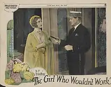 The Girl Who Wouldn't Work is an extant 1925 American silent drama film produced by B. P. Schulberg and starring Lionel Barrymore and Marguerite De La Motte. Preferred Pictures and Al Lichtman handled the distribution of this film directed by Marcel De Sano.[1][2]