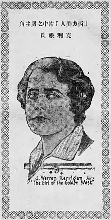 The Girl of the Golden West is a 1923 American silent Western film directed and produced by Edwin Carewe and starring Sylvia Breamer, J. Warren Kerrigan, and Russell Simpson. It was distributed through Associated First National Pictures.[1] It is based on the 1905 David Belasco play The Girl of the Golden West.[2]