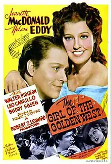 The Girl of the Golden West is a 1938 American musical Western film adapted from the 1905 play of the same name by David Belasco, better known for providing the plot of the opera La fanciulla del West by Giacomo Puccini. A frontier woman falls in love with an outlaw.[3]