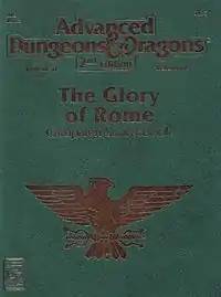 The Glory of Rome lays out guidelines for moving the AD&D game to the Roman Empire.[1] In terms of character classes, mages and psionicists are not available, and fighters can become legionaries, gladiators, and charioteers.[1] Equipment changes as well, for example a short sword becomes a gladius in ancient Rome, and magic works differently.[1]