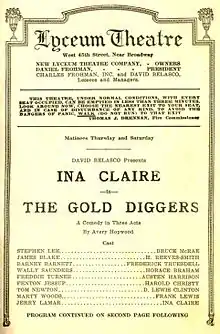- ↑ Unless otherwise cited, all cast info is from "The Gold Diggers". Internet Broadway Database. Retrieved May 1, 2014.