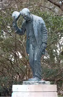 The bronze statue was commissioned in 1927 by Jackson Lee "Jack" Bryan, a cotton planter and businessman. It was executed by Hans Schuler and installed in a park on the river in downtown Natchitoches. The statue was considered liberal for its time, in that it at least acknowledged the existence and worth of African American citizens (it was probably the first statue of an African-American in America).[5] Time magazine said "[Jackson] had been lulled to sleep in his babyhood by Negro spirituals, and had played with little slave boys on his father's old plantation, so he recently felt the urge to do something big for the Negro",[6] while the New York Times said "Many white people in the parish have been nursed or served by the old-time 'uncles' and 'aunties', and a warm regard remains on each side."[7] In fact, Bryan's sister had warned him that the statue might not be tolerated by some in the local white community.