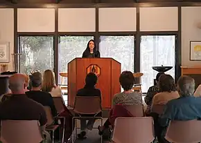 Stewart giving a lecture on "The Good News Club" in Monterey, California in 2013