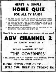 - ↑ ""Live" Dramas - reply to "Dated" Films". The Age. 26 September 1958. p. 23.