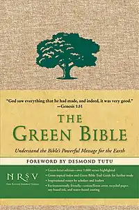The Green Bible is an English version of the New Revised Standard Version Bible with a focus on environmental issues and teachings.[1] It was originally published by Harper Bibles on October 7, 2008. It is a study Bible featuring a foreword by Desmond Tutu and essays by Matthew Sleeth, Calvin B. DeWitt, Pope John Paul II, Brian McLaren, Ellen Bernstein, Ellen F. Davis, James Jones (bishop), N.T. Wright, Barbara Brown Taylor, and Gordon Aeschliman.