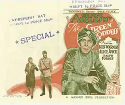 The Green Goddess first was adapted for cinema in 1923. Produced by Distinctive Productions, it was directed by Sidney Olcott and played by George Arliss, Alice Joyce and Jetta Goudal.