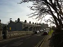 Alma Terrace was built in 1854, since restored and designated Grade II.[33] The wash houses and connecting boundary wall to the rear is also Grade II Listed.[34] The Governor's House (102 Grove Road), with its front boundary wall, is Grade II Listed, and was formerly the Governor's House to the prison, built around 1850.[35] Additionally the prison itself has various Grade Listed features. Ivybank, a detached house on Grove Road, of mid 19th century origin, is Grade II Listed, along with its boundary wall.[36]