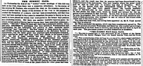 - ↑ "The Surrey Club", in: Bell's Life in London and Sporting Chronicle (London, England), Sunday, October 07, 1849; p. 6. New Readerships