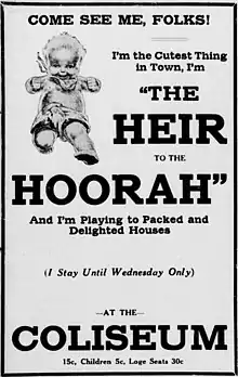 The Heir to the Hoorah is a surviving 1916 silent film produced by Jesse Lasky and released through Paramount Pictures. It was directed by William C. deMille.[1]