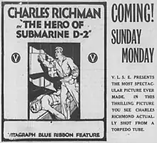 The Hero of Submarine D-2 is a lost[1] 1916 silent film adventure war film directed by Paul Scardon and starring Charles Richman. It was produced by the Vitagraph Company of America and released by V-L-S-E Incorporated.[2][3][4]