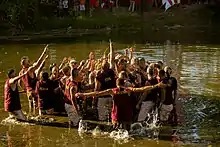 When the losing team has lost so much rope that they must move their Anchor into the pit in front of them to compensate, they then have 30 minutes to regain that pit. If they do not do so, The Pull is called, and the other team wins. During this last half hour, each team removes the large banner that originally blocked the view of the other team. Originally, the losing team was the team pulled into the river. Since then, the format of The Pull has changed and it has moved to a wider part of the river. Tradition now has the winners pulling the entirety of the rope onto their side of the river before jumping into the river and celebrating their victory as the losing team looks on from the riverbank.