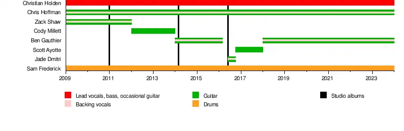 - Christian Holden – lead vocals, bass, occasional guitar[27] (2009–present)