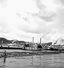 It was originally constructed by the Powell River Company, a pulp and paper mill, and the ships help form their log pond.