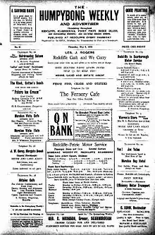 The Humpybong Weekly and Advertiser was a weekly English language newspaper printed and published by Richard Greenough Gardner in Redcliffe, Queensland and was first issued Thursday, 10 March 1927.[2] It was the first newspaper printed on the Redcliffe Peninsula.[3] From issue number 28 (Thursday 15 September 1927) the proprietors were recorded as Gardner and Leeming.[4] The publisher claimed a circulation in Redcliffe, Scarborough, Woody Point, Bribie Island and surrounding districts.[5] Reports of the Redcliffe City Council meetings give an insight into the issues of the time e.g. the construction of housing for families in need at Redcliffe during the Depression and employment of their breadwinners by Council.[6] The publication ceased on Thursday, 10 November 1932 due to lack of advertising support.[7]