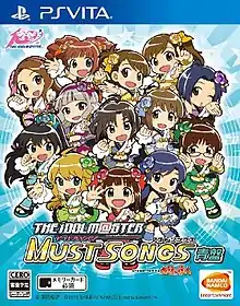 The Idolmaster Must Songs Presented by Taiko no Tatsujin (アイドルマスター マストソングスPresented by 太鼓の達人, officially stylized as THE iDOLM@STER MUST SONGS Presented by Taiko no Tatsujin) is a PlayStation Vita rhythm game, released by Bandai Namco Entertainment on December 10, 2015. Though a title of The Idolmaster series, its game system is drawn from Taiko no Tatsujin.[1] Must Songs was released in two versions, each featuring different music: Aka-ban (赤盤, Red Disc) and Ao-ban (青盤, Blue Disc). Aka-ban features earlier music in the original The Idolmaster series, and Ao-ban features music from the 2nd Vision games; both versions contain 40 songs. The game received a score of 32 out of 40 from the Japanese video game magazine Famitsu.[2]