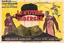 The Imberger Mystery (French: Le mystère Imberger) is a 1935 French mystery crime film directed by Jacques Séverac and starring Camille Bert, Simone Deguyse and Jean Galland.[1] It was based on a play by Henry de Gorsse.[2]