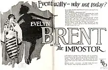 The Impostor is a 1926 American silent crime film directed by Chester Withey and starring Evelyn Brent, Carroll Nye, and James Morrison.[1]