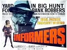 The Informers (US title - Underworld Informers) is a 1963 British crime film produced and distributed in the UK by The Rank Organisation and distributed in the US by Continental Film Distributors. It was directed by Ken Annakin and produced by William MacQuitty, with screenplay by Paul Durst and Alun Falconer from the novel Death of a Snout by Douglas Warner. It stars Nigel Patrick, Margaret Whiting, Harry Andrews, Derren Nesbitt and Colin Blakely. Cinematography was by Reginald H. Wyer. It was filmed at Pinewood Studios and on location in London.