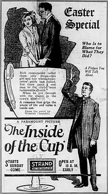 The Inside of the Cup is a 1913 best-selling novel by American writer Winston Churchill. The story was first serialized in Hearst's Magazine from April 1912 through July 1913, and was released in book form in May 1913. The best-selling book in the United States for 1913, it sparked a nationwide debate about the role of Christianity in modern life.