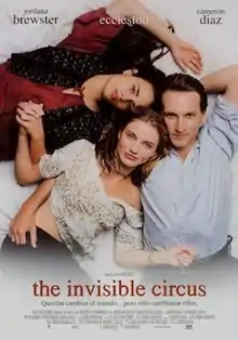 The Invisible Circus is a 2001 American drama film written and directed by Adam Brooks and starring Jordana Brewster, Christopher Eccleston, and Cameron Diaz. Based on the 1995 novel The Invisible Circus by Jennifer Egan, the film is about a teenage girl who travels to Europe in 1976 in search of answers to her older sister's suicide. During her search, she falls in love with her dead sister's former boyfriend.[2] The film premiered at the Sundance Film Festival on January 11, 2001, and was released in the United States on February 2, 2001.[2]