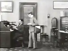 The Invisible Fluid is a 1908 American silent science fiction comedy film produced by the American Mutoscope and Biograph Company of New York, directed by Wallace McCutcheon Sr., and starring Edward Dillon.[4][lower-alpha 4] The short's plot relies extensively on the filming and editing technique of substitution splicing, also known as "stop trick", a special effect that creates the illusion of various characters or objects suddenly vanishing on screen.