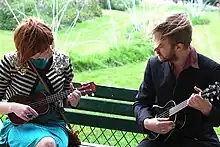 The Jane Austen Argument is an Australian musical duo from Melbourne. Formed in 2010 by Tom Dickins (vocals, piano, ukulele) and Jen Kingwell (piano, vocals, ukulele), the band considers themselves an "indie cabaret duo with overtones of anti-folk and punk love".[1] The duo has had a great amount of support by friend and fellow artist Amanda Palmer, and have supported her on her Goes Down Under Tour of 2011 as well as featured on her compilation record of the same name. Their debut album Somewhere Under The Rainbow was released through Bandcamp on 2 March 2012.